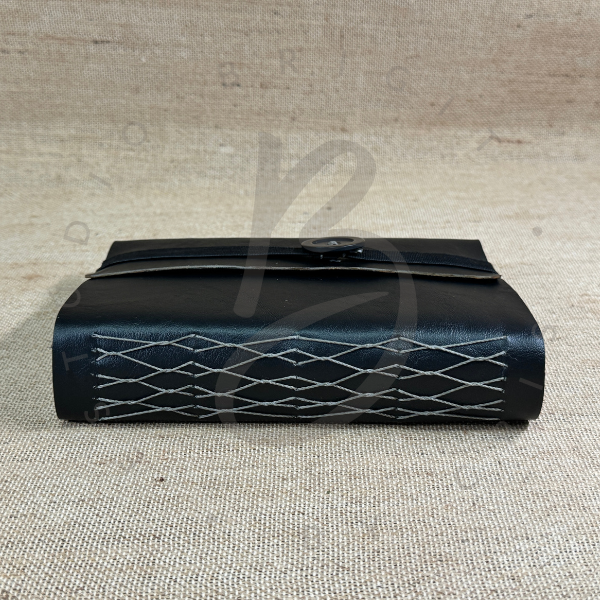 - Capa macia, em courino preto, revestida internamente com tecido;