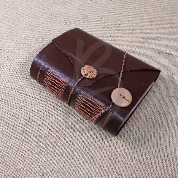 - Capa macia em couro marrom revestida internamente com tecido;